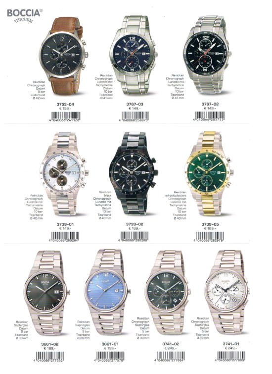 Eine representative Uhrenauswahl aus dem Hause Boccia